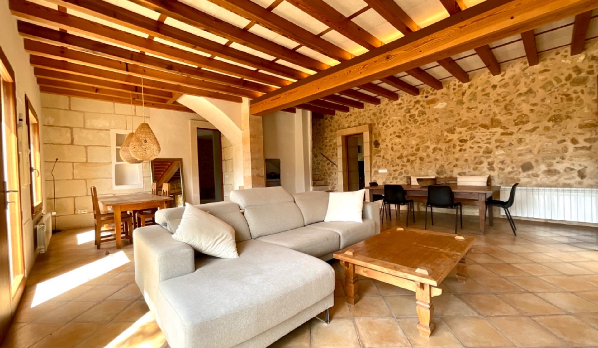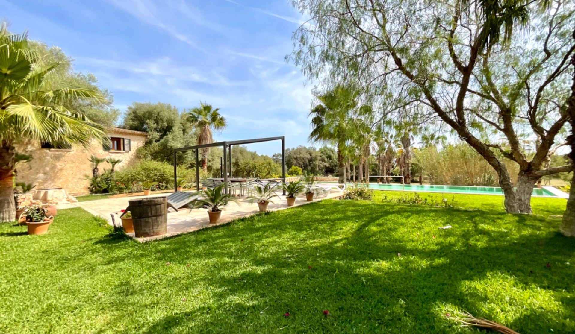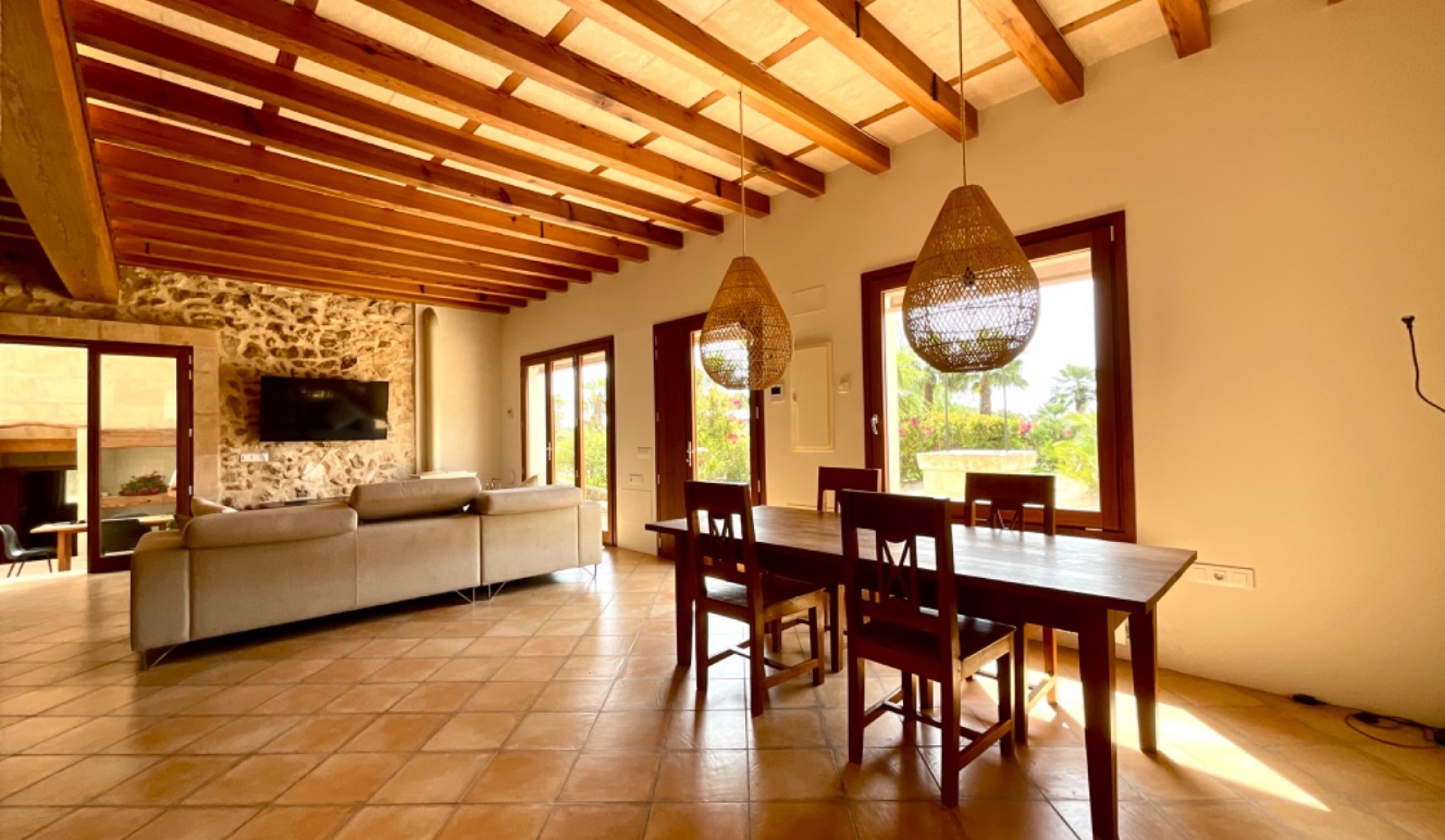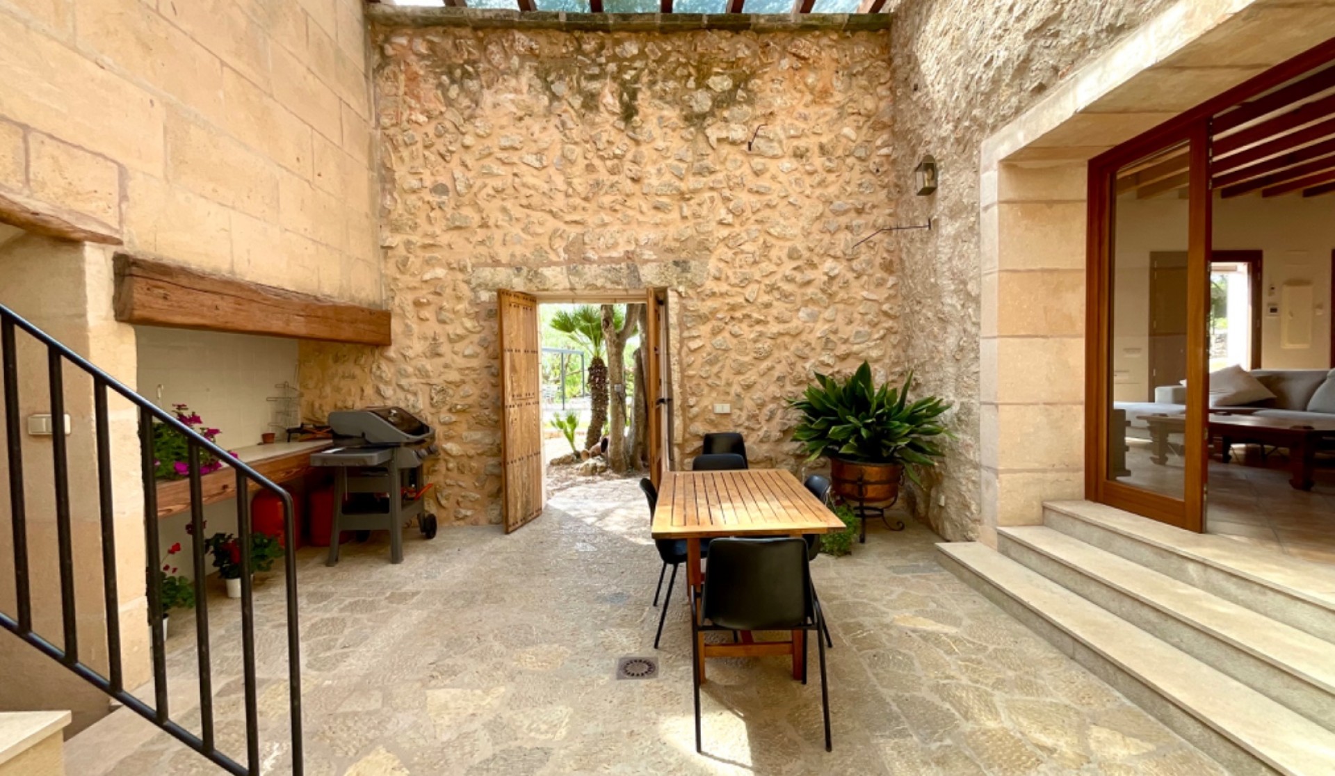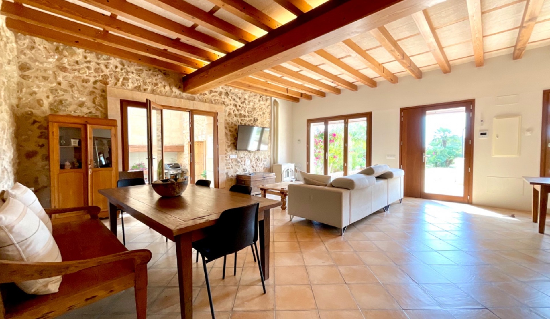 Wir präsentieren eine luxuriöse rustikale Villa, die im Westen Mallorcas, unweit von Manacor, liegt. Mit einer Ferienvermietungslizenz für 10 Personen bietet diese Immobilie die perfekte Mischung aus Eleganz und Komfort, ideal für diejenigen, die ein einzigartiges Erlebnis auf der Insel suchen. Die Villa, Son Brun, befindet sich auf einem Grundstück von 15.000 m² und bietet 500 m² Wohnfläche, die 2022 fertiggestellt wurde. Ihr Design vereint traditionelle mallorquinische Architektur mit modernem Stil und schafft helle Räume mit freigelegten Steindetails, die die Schönheit des Anwesens unterstreichen. Grundriss der Immobilie: Haupthaus auf zwei Etagen:Im Erdgeschoss befindet sich ein geräumiges Wohn-Esszimmer mit Kamin, eine große moderne Küche, ein Badezimmer mit Dusche und ein zusätzliches Gäste-WC.Im Obergeschoss befinden sich zwei luxuriöse und großzügige Schlafzimmer mit Badezimmer en suite, jeweils mit Badewanne und Dusche.Nebengebäude mit drei weiteren Schlafzimmern (eins im Erdgeschoss und zwei im Obergeschoss). Die beiden Gebäude sind durch einen überdachten Innenhof miteinander verbunden, was Privatsphäre und Komfort bietet. Die Villa ist vollständig ausgestattet mit Zentralheizung und Klimaanlage in allen Bereichen, um ganzjährig eine angenehme Umgebung zu gewährleisten. Außenbereich: Ein beeindruckender Infinity-Pool mit den Maßen 15 x 6 Meter, umgeben von einem großen grünen Garten mit Rasen und einheimischen Pflanzen.Grillbereich und Außenbereich für Mahlzeiten, ideal für das Genießen von Mahlzeiten im Freien.Ein privater Obstgarten mit Obstbäumen, darunter Orangen-, Zitronen-, Pflaumen- und Nispelbäume. Die Immobilie wurde so konzipiert, dass jeder Winkel genutzt werden kann, mit Terrassen, die es ermöglichen, das natürliche Licht den ganzen Tag über zu genießen. Nur 1,8 km von Manacor entfernt, bietet die Villa Privatsphäre, Komfort und Luxus in einer spektakulären natürlichen Umgebung und ist gleichzeitig nur wenige Minuten von allen Annehmlichkeiten und Dienstleistungen entfernt, die die Stadt zu bieten hat. Diese Villa ist die perfekte Wahl für diejenigen, die eine exklusive Immobilie in Mallorca suchen und die Ruhe und Schönheit des Landes mit der Nähe zum urbanen Leben verbinden möchten. Verpassen Sie nicht die Gelegenheit, luxuriöses Wohnen auf Mallorca zu erleben! Kontaktieren Sie uns noch heute für weitere Informationen oder um Ihren Besuch bei diesem Immobilienjuwel zu vereinbaren.