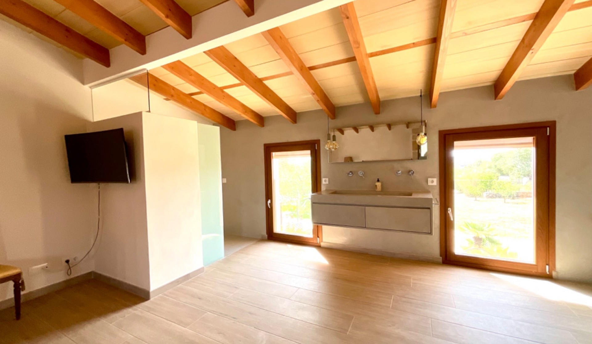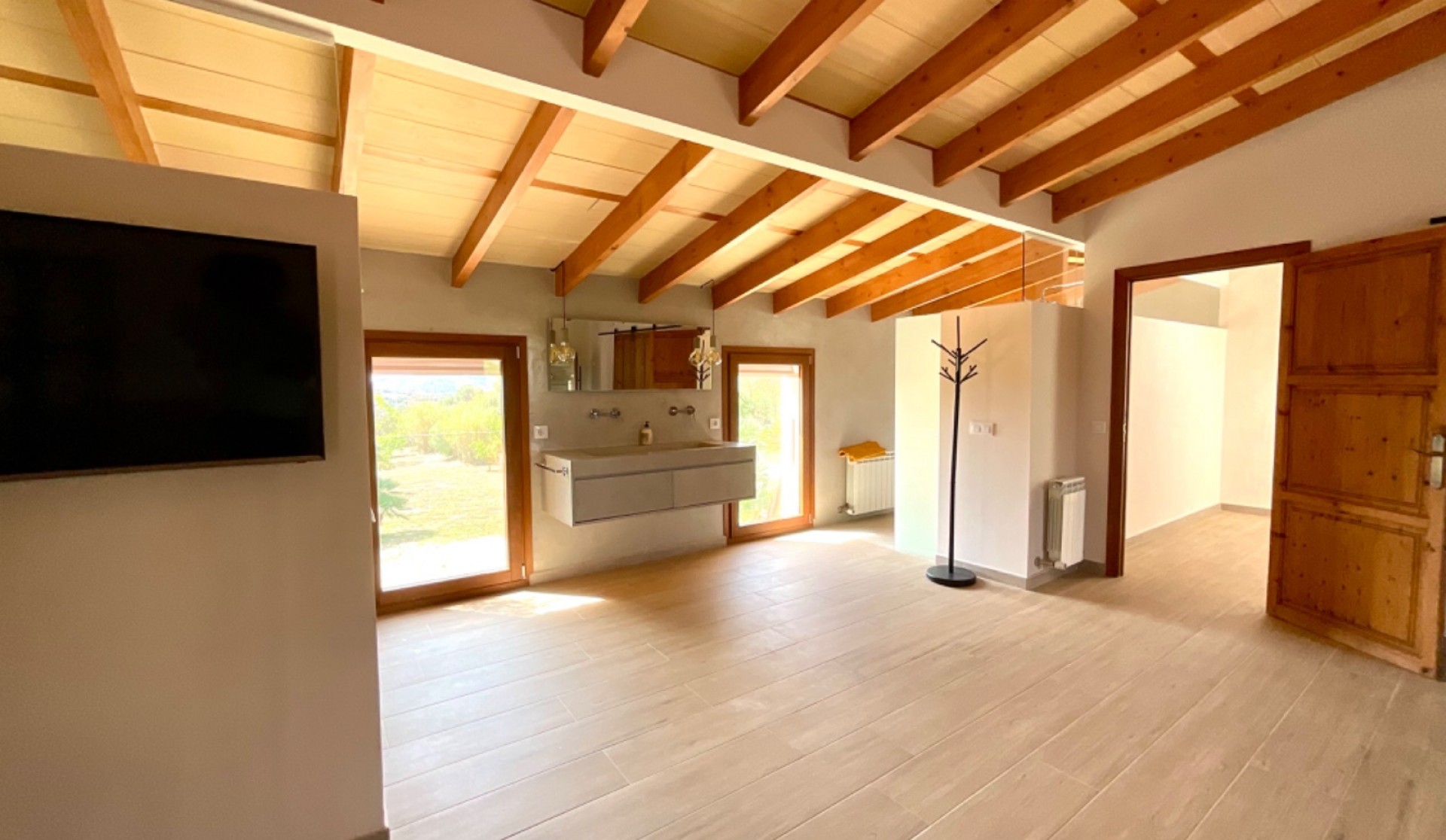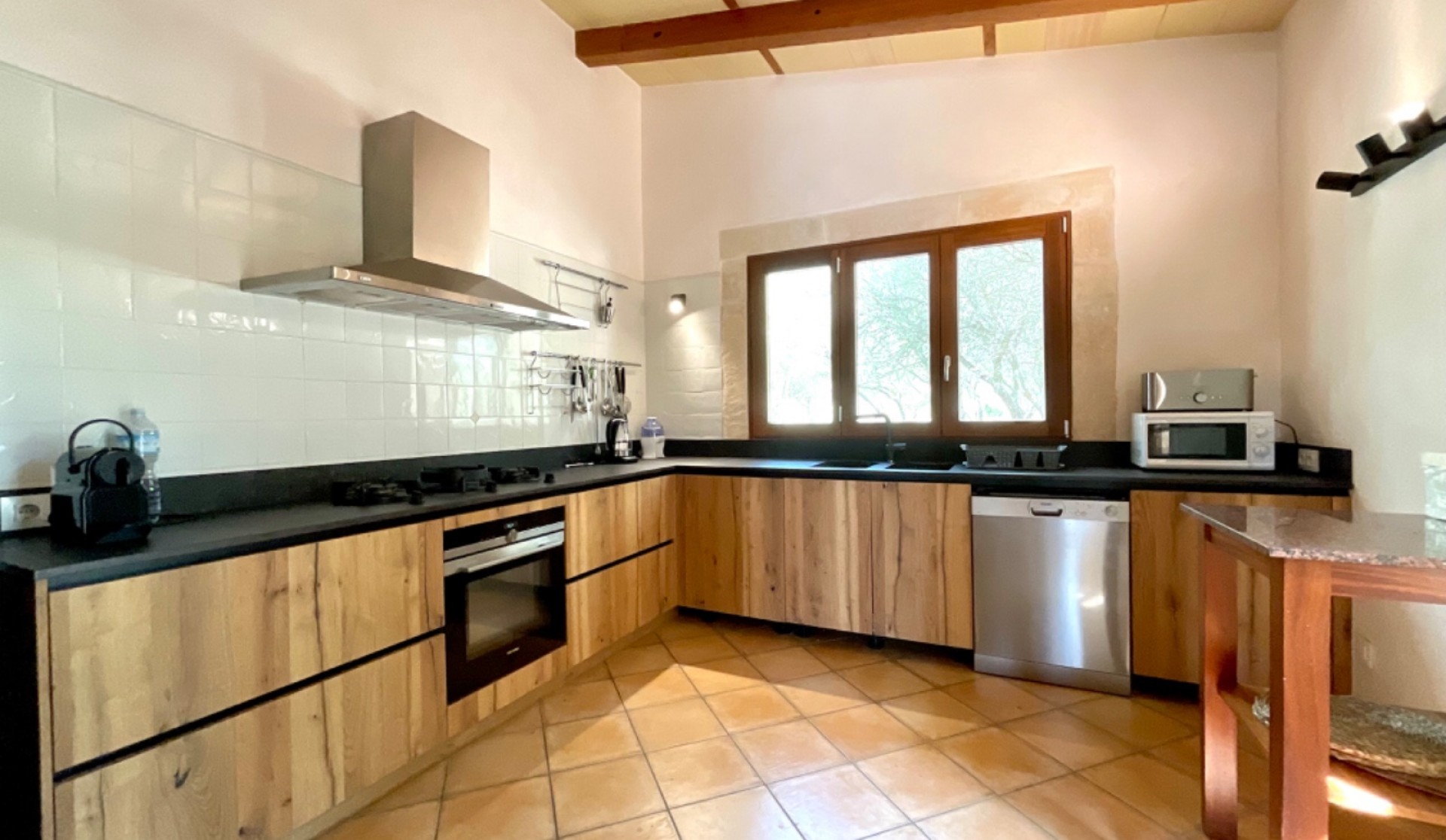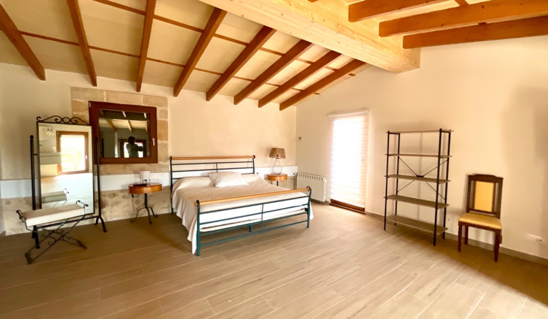 Wir präsentieren eine luxuriöse rustikale Villa, die im Westen Mallorcas, unweit von Manacor, liegt. Mit einer Ferienvermietungslizenz für 10 Personen bietet diese Immobilie die perfekte Mischung aus Eleganz und Komfort, ideal für diejenigen, die ein einzigartiges Erlebnis auf der Insel suchen. Die Villa, Son Brun, befindet sich auf einem Grundstück von 15.000 m² und bietet 500 m² Wohnfläche, die 2022 fertiggestellt wurde. Ihr Design vereint traditionelle mallorquinische Architektur mit modernem Stil und schafft helle Räume mit freigelegten Steindetails, die die Schönheit des Anwesens unterstreichen. Grundriss der Immobilie: Haupthaus auf zwei Etagen:Im Erdgeschoss befindet sich ein geräumiges Wohn-Esszimmer mit Kamin, eine große moderne Küche, ein Badezimmer mit Dusche und ein zusätzliches Gäste-WC.Im Obergeschoss befinden sich zwei luxuriöse und großzügige Schlafzimmer mit Badezimmer en suite, jeweils mit Badewanne und Dusche.Nebengebäude mit drei weiteren Schlafzimmern (eins im Erdgeschoss und zwei im Obergeschoss). Die beiden Gebäude sind durch einen überdachten Innenhof miteinander verbunden, was Privatsphäre und Komfort bietet. Die Villa ist vollständig ausgestattet mit Zentralheizung und Klimaanlage in allen Bereichen, um ganzjährig eine angenehme Umgebung zu gewährleisten. Außenbereich: Ein beeindruckender Infinity-Pool mit den Maßen 15 x 6 Meter, umgeben von einem großen grünen Garten mit Rasen und einheimischen Pflanzen.Grillbereich und Außenbereich für Mahlzeiten, ideal für das Genießen von Mahlzeiten im Freien.Ein privater Obstgarten mit Obstbäumen, darunter Orangen-, Zitronen-, Pflaumen- und Nispelbäume. Die Immobilie wurde so konzipiert, dass jeder Winkel genutzt werden kann, mit Terrassen, die es ermöglichen, das natürliche Licht den ganzen Tag über zu genießen. Nur 1,8 km von Manacor entfernt, bietet die Villa Privatsphäre, Komfort und Luxus in einer spektakulären natürlichen Umgebung und ist gleichzeitig nur wenige Minuten von allen Annehmlichkeiten und Dienstleistungen entfernt, die die Stadt zu bieten hat. Diese Villa ist die perfekte Wahl für diejenigen, die eine exklusive Immobilie in Mallorca suchen und die Ruhe und Schönheit des Landes mit der Nähe zum urbanen Leben verbinden möchten. Verpassen Sie nicht die Gelegenheit, luxuriöses Wohnen auf Mallorca zu erleben! Kontaktieren Sie uns noch heute für weitere Informationen oder um Ihren Besuch bei diesem Immobilienjuwel zu vereinbaren.