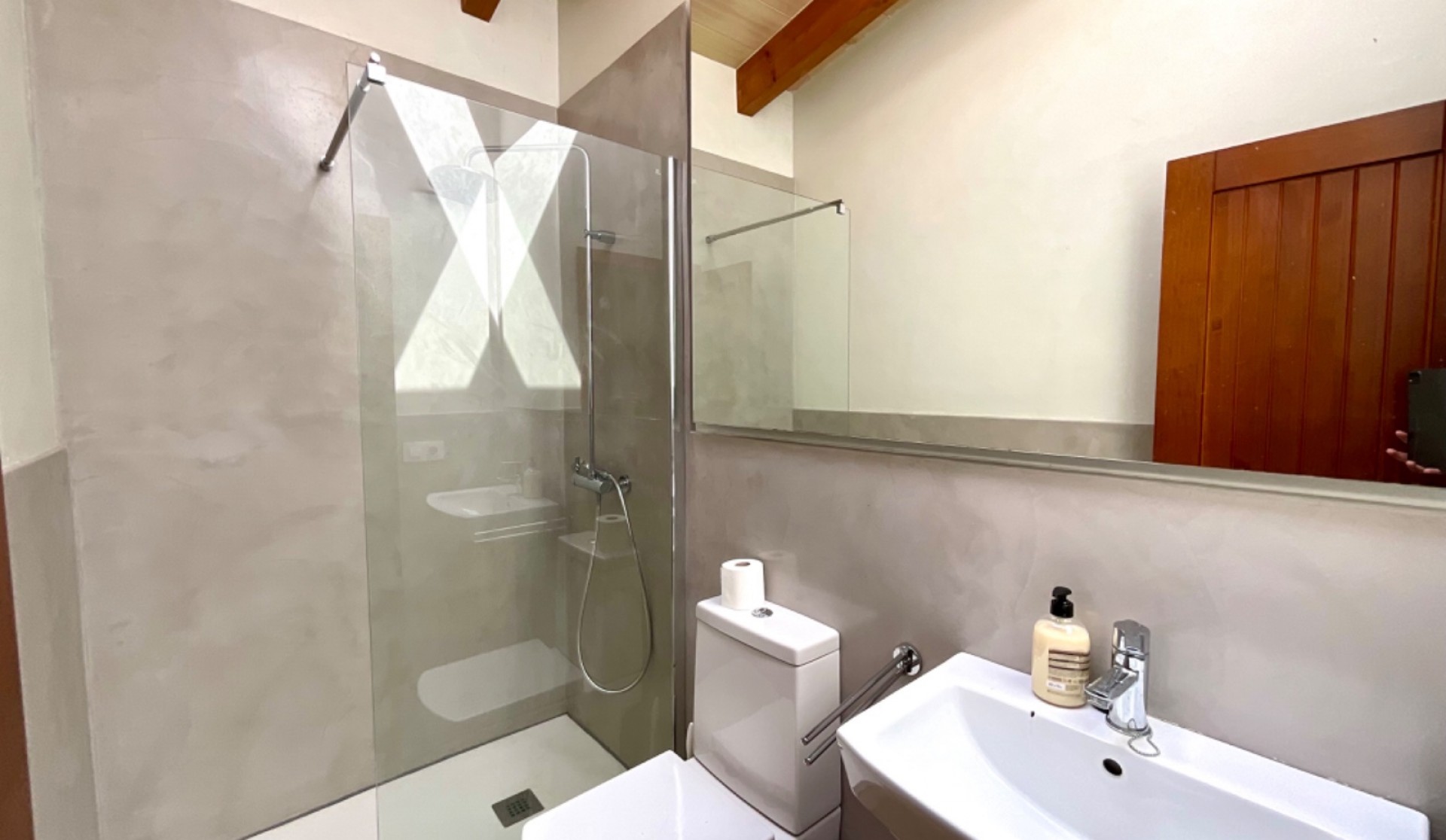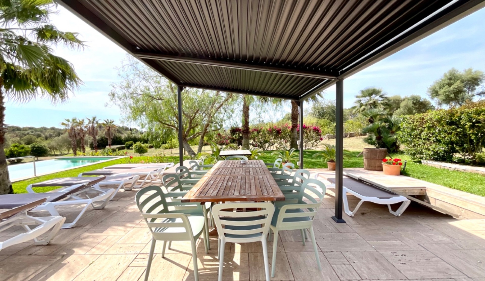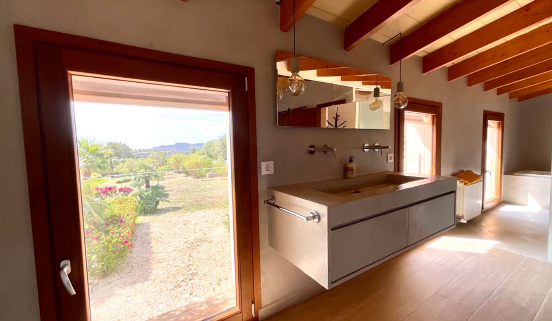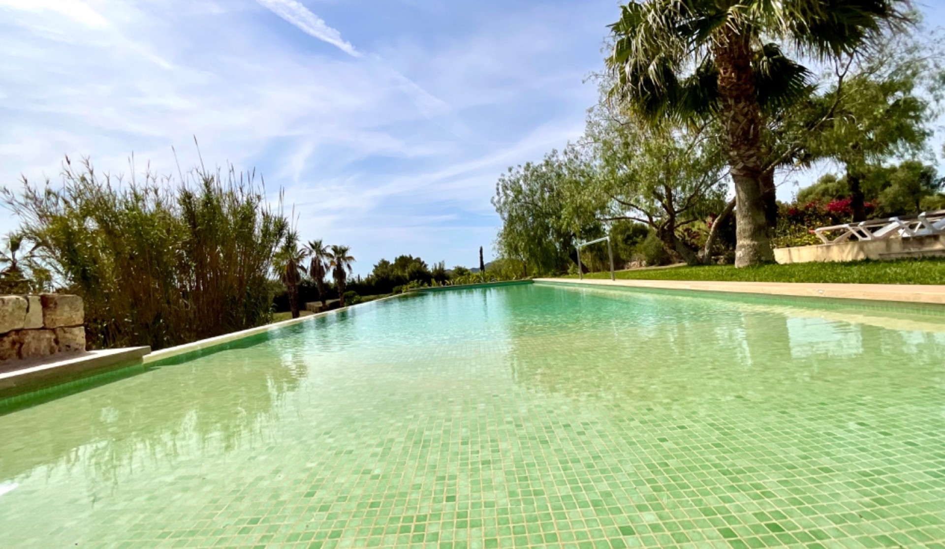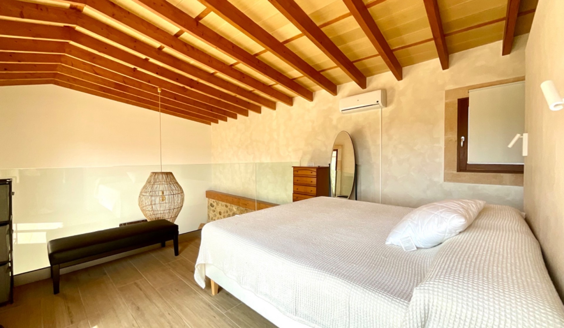 Wir präsentieren eine luxuriöse rustikale Villa, die im Westen Mallorcas, unweit von Manacor, liegt. Mit einer Ferienvermietungslizenz für 10 Personen bietet diese Immobilie die perfekte Mischung aus Eleganz und Komfort, ideal für diejenigen, die ein einzigartiges Erlebnis auf der Insel suchen. Die Villa, Son Brun, befindet sich auf einem Grundstück von 15.000 m² und bietet 500 m² Wohnfläche, die 2022 fertiggestellt wurde. Ihr Design vereint traditionelle mallorquinische Architektur mit modernem Stil und schafft helle Räume mit freigelegten Steindetails, die die Schönheit des Anwesens unterstreichen. Grundriss der Immobilie: Haupthaus auf zwei Etagen:Im Erdgeschoss befindet sich ein geräumiges Wohn-Esszimmer mit Kamin, eine große moderne Küche, ein Badezimmer mit Dusche und ein zusätzliches Gäste-WC.Im Obergeschoss befinden sich zwei luxuriöse und großzügige Schlafzimmer mit Badezimmer en suite, jeweils mit Badewanne und Dusche.Nebengebäude mit drei weiteren Schlafzimmern (eins im Erdgeschoss und zwei im Obergeschoss). Die beiden Gebäude sind durch einen überdachten Innenhof miteinander verbunden, was Privatsphäre und Komfort bietet. Die Villa ist vollständig ausgestattet mit Zentralheizung und Klimaanlage in allen Bereichen, um ganzjährig eine angenehme Umgebung zu gewährleisten. Außenbereich: Ein beeindruckender Infinity-Pool mit den Maßen 15 x 6 Meter, umgeben von einem großen grünen Garten mit Rasen und einheimischen Pflanzen.Grillbereich und Außenbereich für Mahlzeiten, ideal für das Genießen von Mahlzeiten im Freien.Ein privater Obstgarten mit Obstbäumen, darunter Orangen-, Zitronen-, Pflaumen- und Nispelbäume. Die Immobilie wurde so konzipiert, dass jeder Winkel genutzt werden kann, mit Terrassen, die es ermöglichen, das natürliche Licht den ganzen Tag über zu genießen. Nur 1,8 km von Manacor entfernt, bietet die Villa Privatsphäre, Komfort und Luxus in einer spektakulären natürlichen Umgebung und ist gleichzeitig nur wenige Minuten von allen Annehmlichkeiten und Dienstleistungen entfernt, die die Stadt zu bieten hat. Diese Villa ist die perfekte Wahl für diejenigen, die eine exklusive Immobilie in Mallorca suchen und die Ruhe und Schönheit des Landes mit der Nähe zum urbanen Leben verbinden möchten. Verpassen Sie nicht die Gelegenheit, luxuriöses Wohnen auf Mallorca zu erleben! Kontaktieren Sie uns noch heute für weitere Informationen oder um Ihren Besuch bei diesem Immobilienjuwel zu vereinbaren.