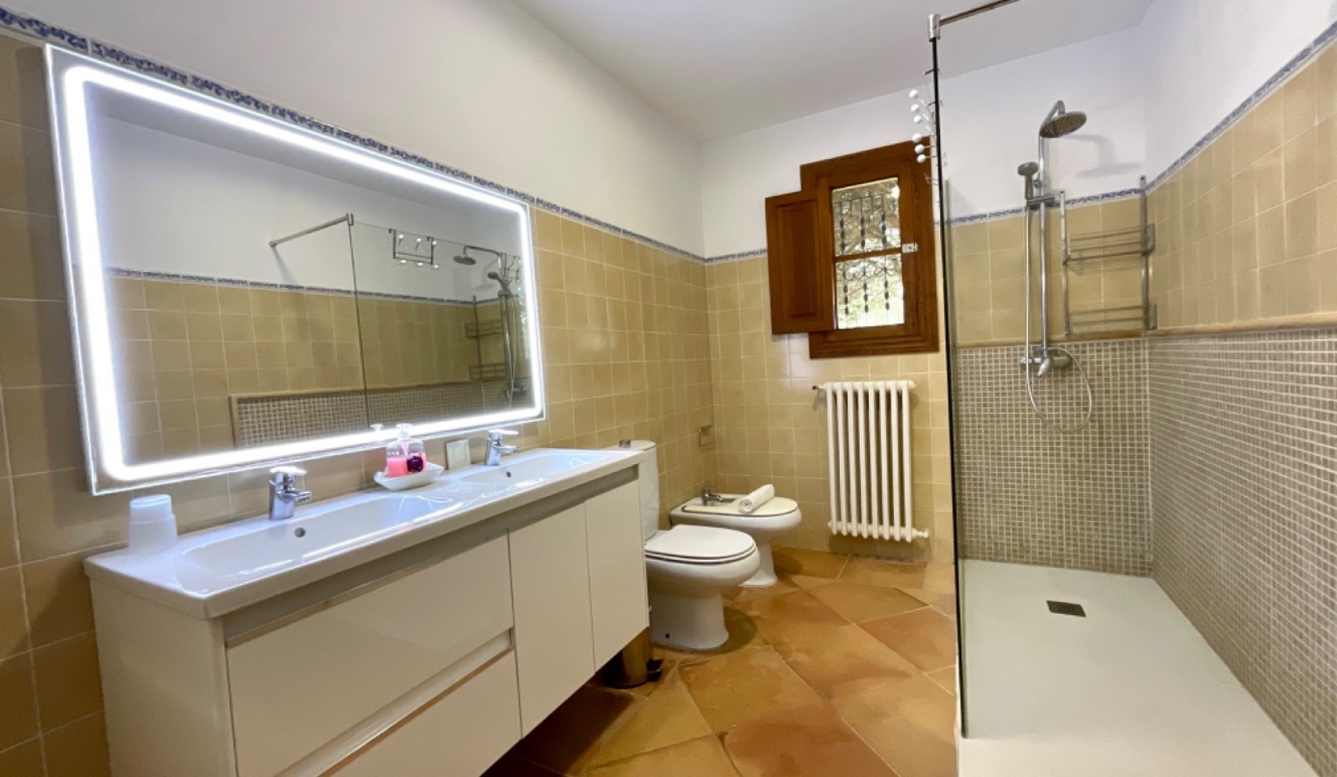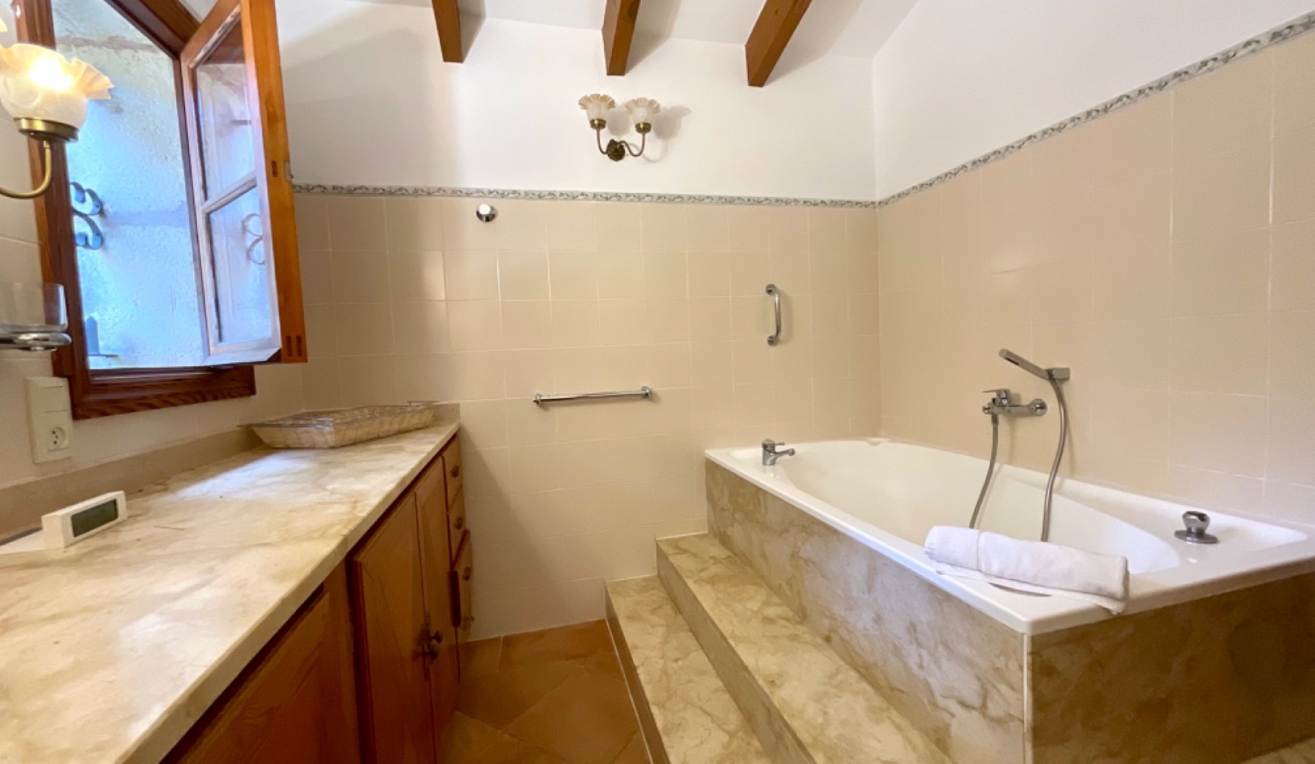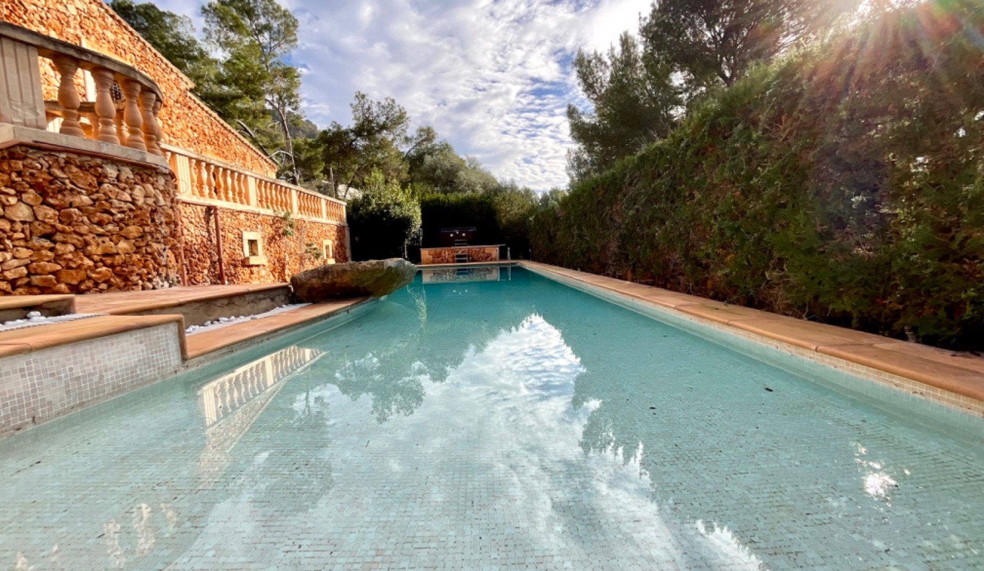 Magnificent luxury villa for sale in the fashionable residential area of Costa de los Pinos. This stunning property is located just a short walk from the sea and the golf course, offering a privileged location. With a total built area of more than 280 m2 distributed over two floors, this villa offers space and comfort for the whole family. The villa is set on a fenced plot of approximately 1270 m2 and has several terraces to enjoy the outdoors. It has been completely renovated with high quality materials such as wood and marble, giving it an elegant and sophisticated style. Inside, there are five bedrooms and four bathrooms, two of which are en suite, guaranteeing privacy and comfort for all members of the family. In addition, the villa has a Turkish bath, a cosy living room with fireplace and a fully fitted kitchen equipped with quality appliances. The outdoor area is beautifully landscaped and offers total privacy. Here we find a beach shaped swimming pool, an outdoor marble jacuzzi and a complete outdoor kitchen, perfect for al fresco dining. The property has a valid holiday licence for ten people, making it an excellent choice for both investment and personal use. The location of this villa is unbeatable, in a quiet luxury residential area, close to Artà and Son Servera. In addition, there are four fantastic golf courses in the immediate vicinity and tennis centres nearby. The famous resorts of Cala Ratjada and Cala Millor are within easy reach, offering a wide variety of services and entertainment. Costa de los Pinos is known for its peace and tranquillity, surrounded by a dense pine forest and facing a rugged rocky coastline. It also boasts a secluded beach of fine sand, as well as fabulous coves with turquoise waters perfect for bathing, swimming and snorkelling. Don't miss the opportunity to acquire this unique residential property, ideal both as a holiday property and to enjoy nature all year round. With 500 m2 constructed area, five bedrooms, four bathrooms, terrace, balcony, fitted wardrobes, storage room and garage space, this villa offers everything you need to live comfortably. Contact us today for more information!