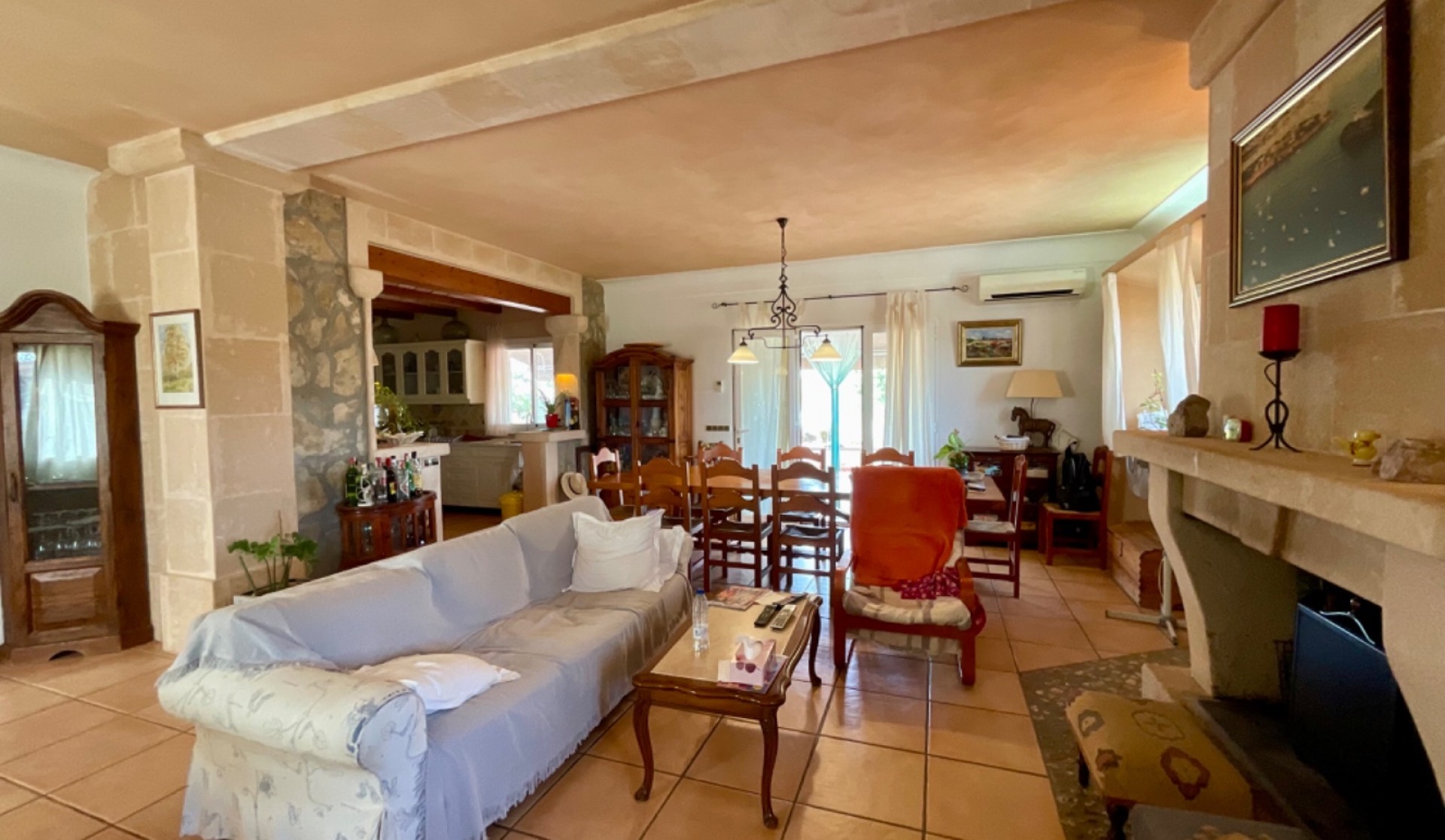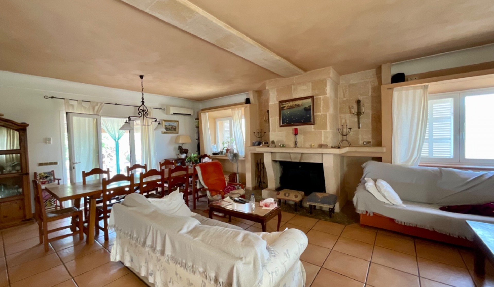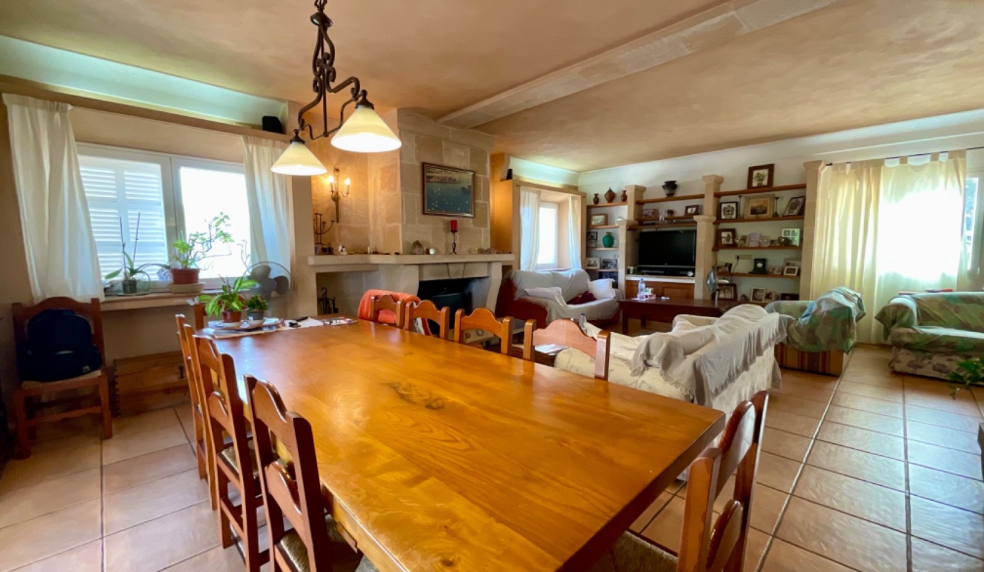 Located in a privileged natural setting, this spectacular rustic house in Felanitx offers the perfect blend of comfort and tranquillity. Set on a 21,597 m² plot with a 300 m² construction spread over two floors, this property stands out for its spaciousness and beauty. Main Features: Main house of 300 m² over two floors3 double bedrooms with access to private terraces2 full bathrooms with modern fittingsLarge office kitchen with a spacious pantryBright living-dining room with direct access to the gardenSpacious terraces in the bedrooms, perfect for outdoor enjoyment2 garages and storage roomPrivate pool surrounded by a well-kept gardenSolar panels for energy efficiency Guest House: A charming independent dwelling, perfect for hosting family and friends with total privacy and comfort. Additional Details: Usable space of 330 m²Plot size of 21,597 m²Air conditioning and individual heatingSouth-east orientation, providing sunlight all day longBuilt-in wardrobes in all bedroomsSecond-hand, in excellent condition Equipment and Amenities: Private pool for sunny daysGarden for relaxation and enjoying natureGarage space included This unique property is the ideal choice for those seeking a spacious country house that is well-connected yet secluded, in a peaceful natural environment. Don’t miss the opportunity to view it!