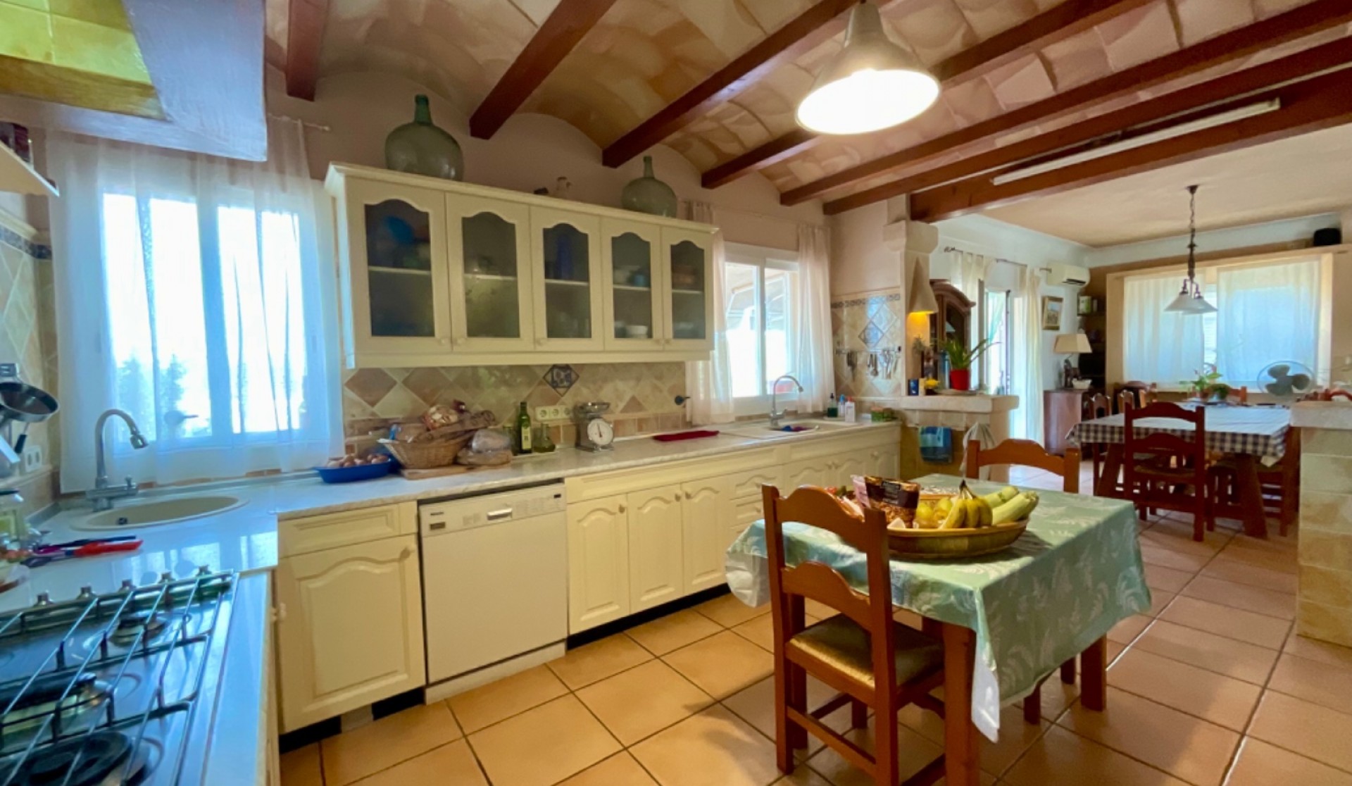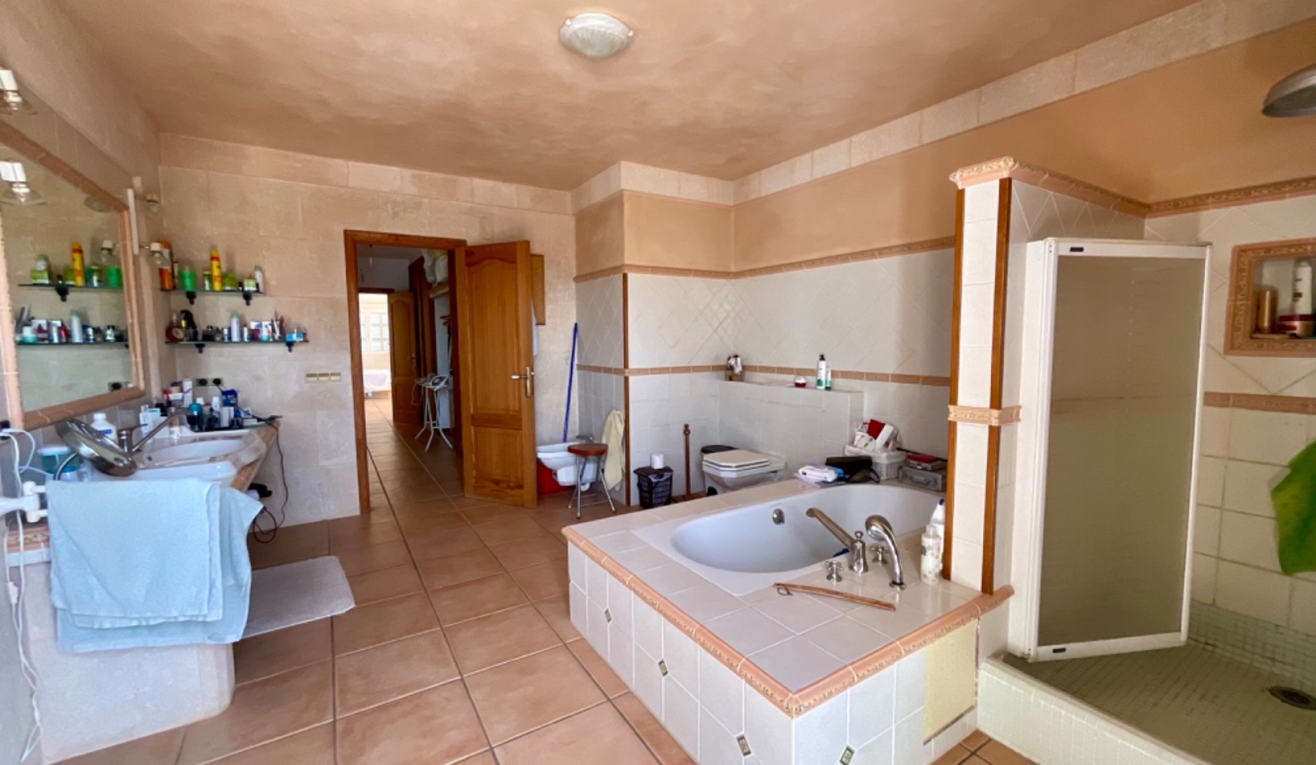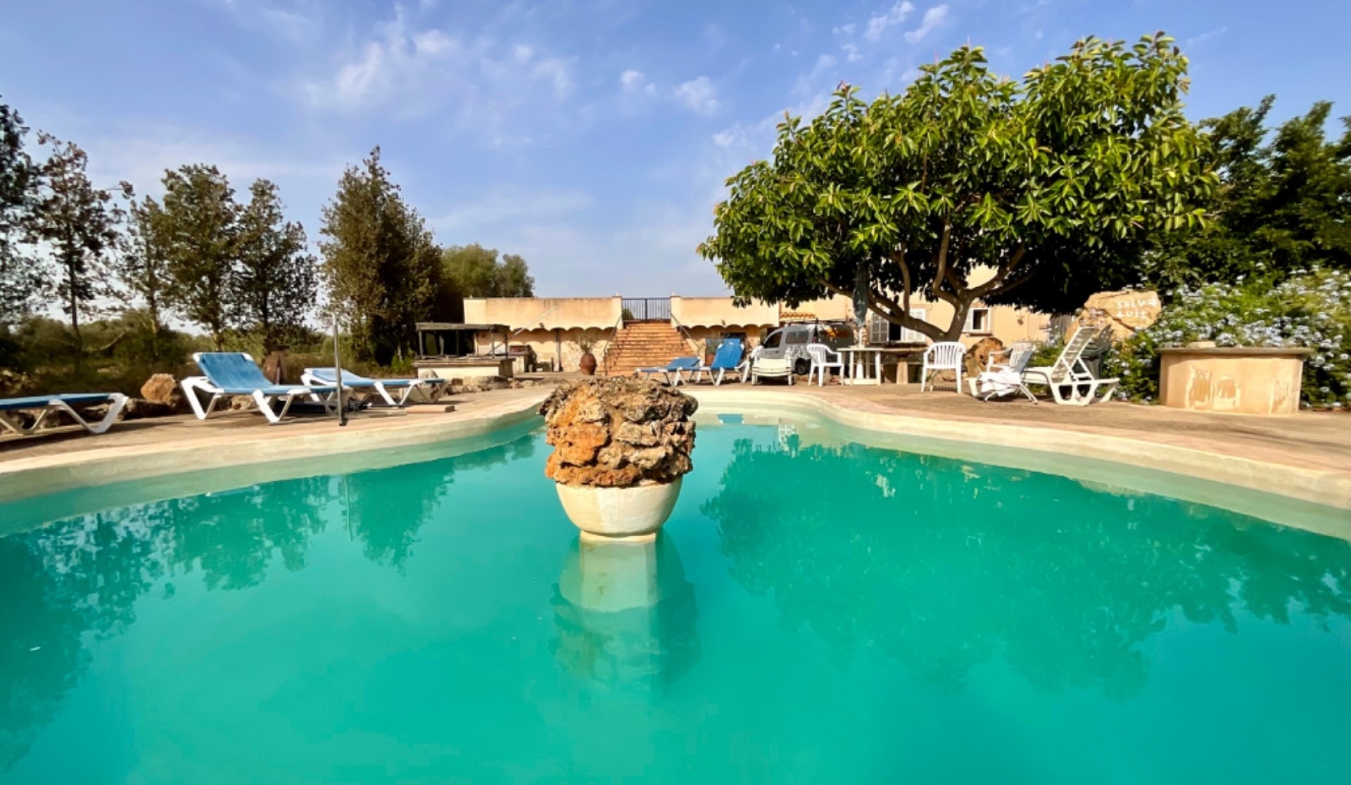 Located in a privileged natural setting, this spectacular rustic house in Felanitx offers the perfect blend of comfort and tranquillity. Set on a 21,597 m² plot with a 300 m² construction spread over two floors, this property stands out for its spaciousness and beauty. Main Features: Main house of 300 m² over two floors3 double bedrooms with access to private terraces2 full bathrooms with modern fittingsLarge office kitchen with a spacious pantryBright living-dining room with direct access to the gardenSpacious terraces in the bedrooms, perfect for outdoor enjoyment2 garages and storage roomPrivate pool surrounded by a well-kept gardenSolar panels for energy efficiency Guest House: A charming independent dwelling, perfect for hosting family and friends with total privacy and comfort. Additional Details: Usable space of 330 m²Plot size of 21,597 m²Air conditioning and individual heatingSouth-east orientation, providing sunlight all day longBuilt-in wardrobes in all bedroomsSecond-hand, in excellent condition Equipment and Amenities: Private pool for sunny daysGarden for relaxation and enjoying natureGarage space included This unique property is the ideal choice for those seeking a spacious country house that is well-connected yet secluded, in a peaceful natural environment. Don’t miss the opportunity to view it!