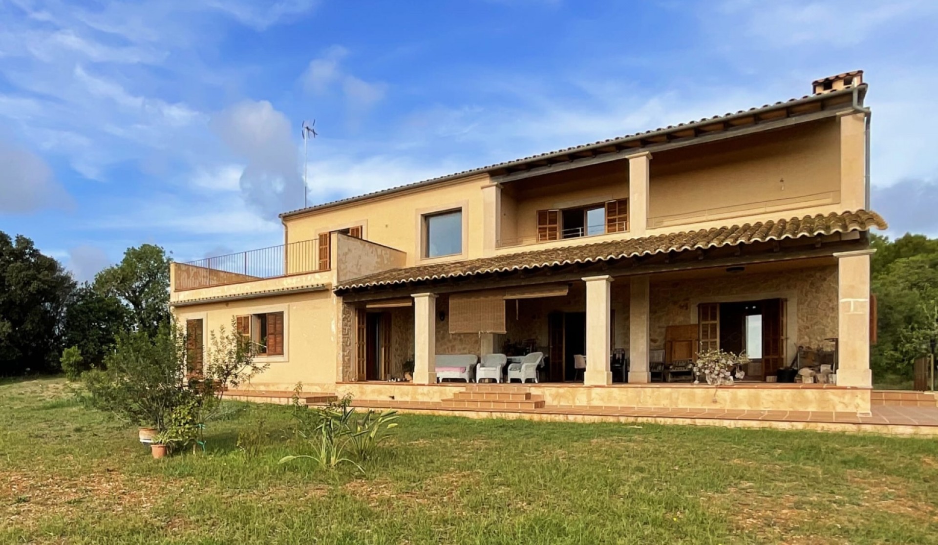 Bienvenido a esta magnífica finca situada a solo 5 minutos de Manacor, en un entorno tranquilo y pintoresco. En lo alto de un terreno de 14.200m2, esta propiedad ofrece vistas panorámicas y un ambiente de paz y serenidad. El acceso a la finca es fácil y cómodo, a través de un camino en excelentes condiciones, asfaltado hasta la mitad del trayecto, lo que garantiza un viaje sin contratiempos hacia tu refugio en el campo. Con 300m2 construidos, esta casa principal se distribuye en dos plantas más un semisótano con espacio para varios coches en su garaje. En la planta principal, encontrarás un amplio salón comedor con chimenea, un porche perfecto para disfrutar del aire fresco, una cocina espaciosa, lavandería, una habitación y un baño. En la primera planta, se encuentran tres dormitorios, uno de ellos con vestidor, y dos baños, uno de ellos en suite. Cada dormitorio cuenta con armarios empotrados y acceso a una terraza o porche, desde donde podrás deleitarte con las vistas y la tranquilidad del entorno. La casa está equipada con calefacción central y ventanas de doble acristalamiento, asegurando un ambiente acogedor y confortable en todas las estaciones del año. Además, cuenta con todos los servicios necesarios para garantizar tu comodidad y bienestar. Esta finca se encuentra a pocos minutos de Manacor, donde está ubicado el prestigioso colegio de Rafa Nadal, y a aproximadamente 35 minutos del aeropuerto de Palma de Mallorca, lo que facilita los desplazamientos tanto dentro como fuera de la isla. No dejes pasar la oportunidad de vivir en esta espaciosa finca cerca de Manacor, donde podrás disfrutar de la vida en el campo con todas las comodidades de la ciudad a tu alcance. ¡Contáctanos hoy mismo para más información y para programar una visita!